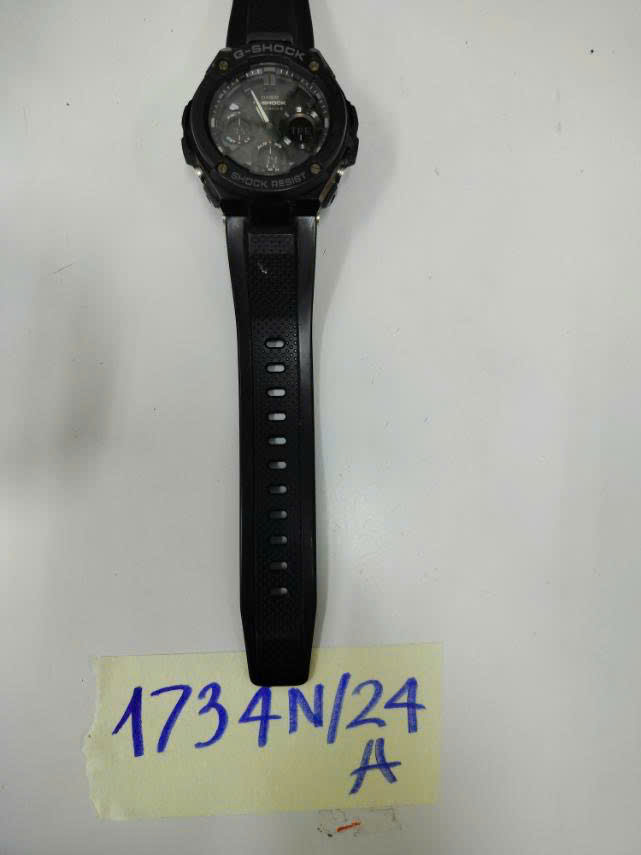 Ngày tiếp nhận: 11/10/2024 Mã hồ sơ: 1734N2024A Mô tả: 01 đồng hồ Casio-G Shock màu đen dây cao su màu đen. |