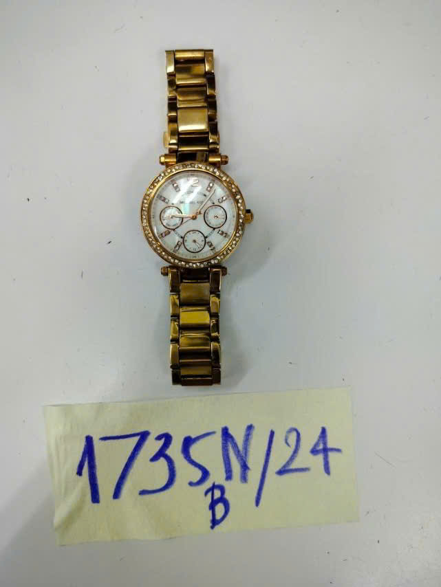 Ngày tiếp nhận: 11/10/2024 Mã hồ sơ: 1735N2024B Mô tả: 01 đồng hồ đeo tay bằng kim loại màu vàng mặt hình tròn in logo MICHEAL KORS (MK-5616) đã qua sử dụng. |