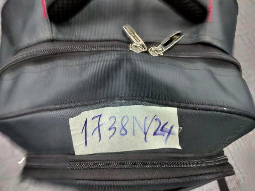 Ngày tiếp nhận: 10/10/2024 Mã hồ sơ: 1725N2024C Mô tả: 01 ba lô màu đen chữ Superdry bên trong có 3600 đô la Úc một điện thoại Apple màu đen một điện thoại Samsung màu đen một chai nước hoa có chữ em Ambre Maạestique,06 cái mắt kính, một máy tính CANON, một số cục sạc dây sạc,một túi nhỏ màu đen đựng thuốc một số quần áo. |