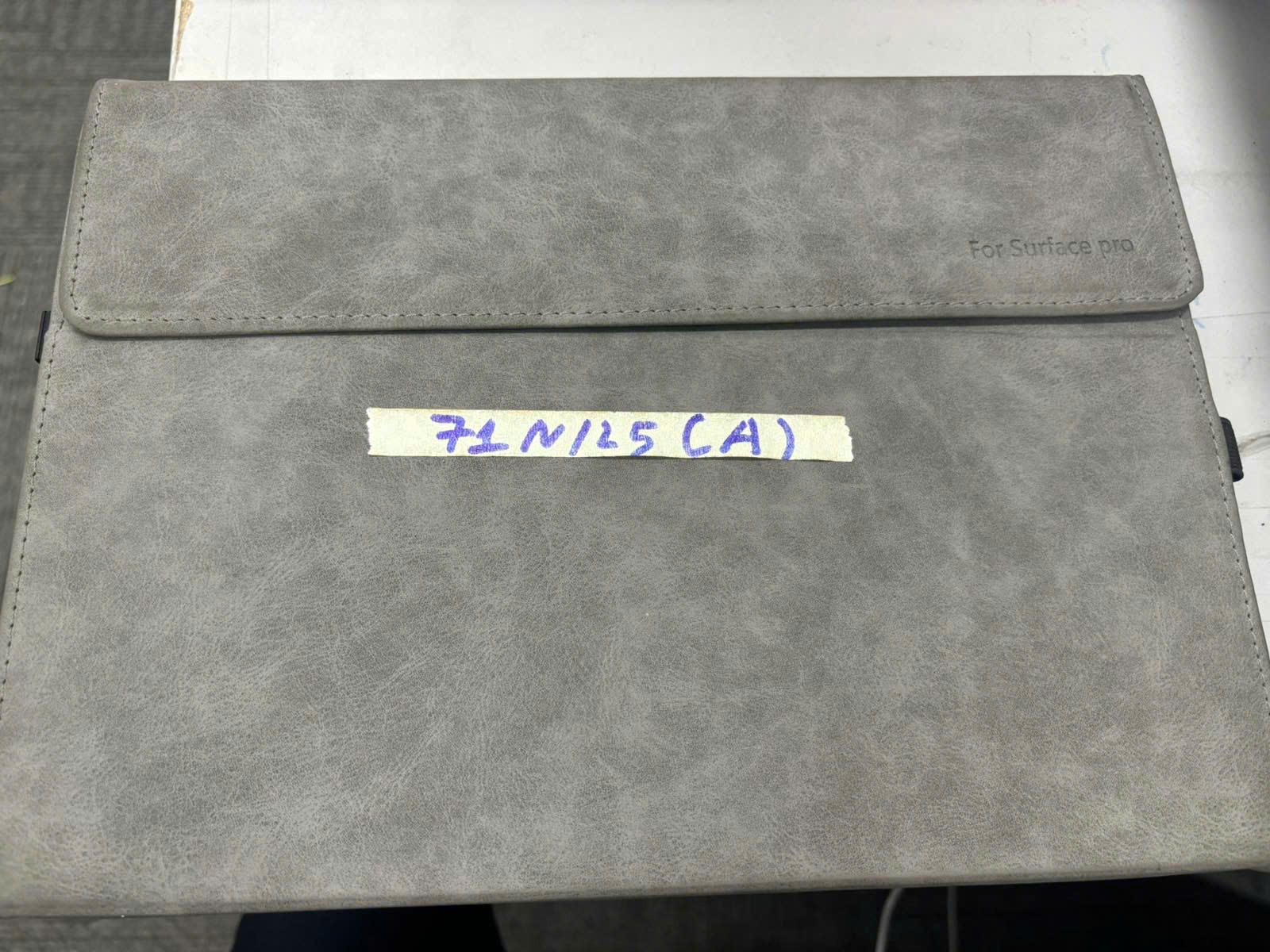 Ngày tiếp nhận: 11/01/2025 Mã hồ sơ: 71N2025A Mô tả: 01 máy tính bảng có bao màu xám bên trên có chữ "For surface pro". |