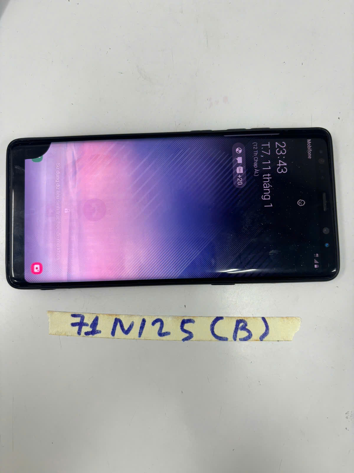 Ngày tiếp nhận: 11/01/2025 Mã hồ sơ: 71N2025B Mô tả: 01 điện thoại màu đen đằng sau có chữ "Samsung". |