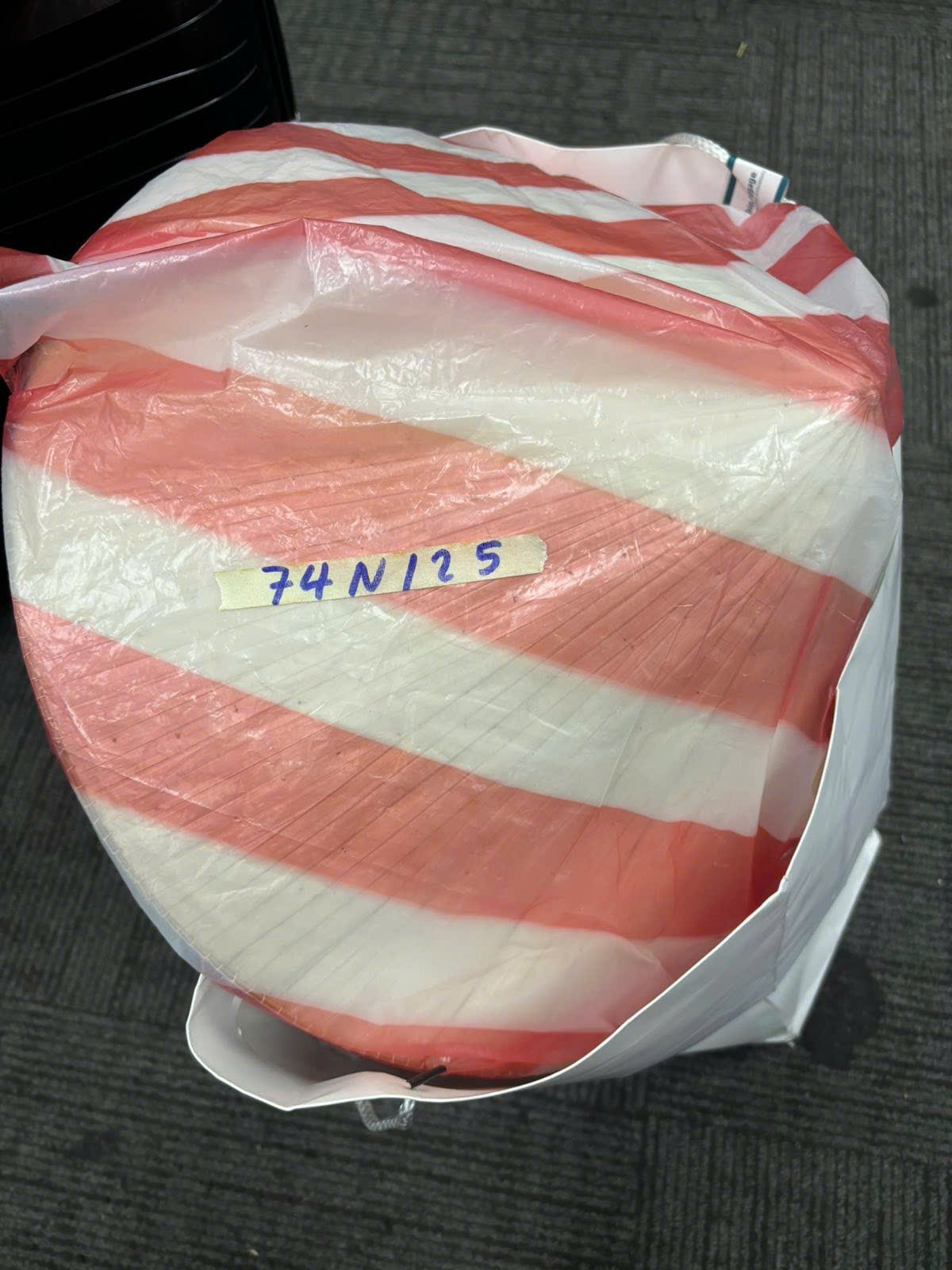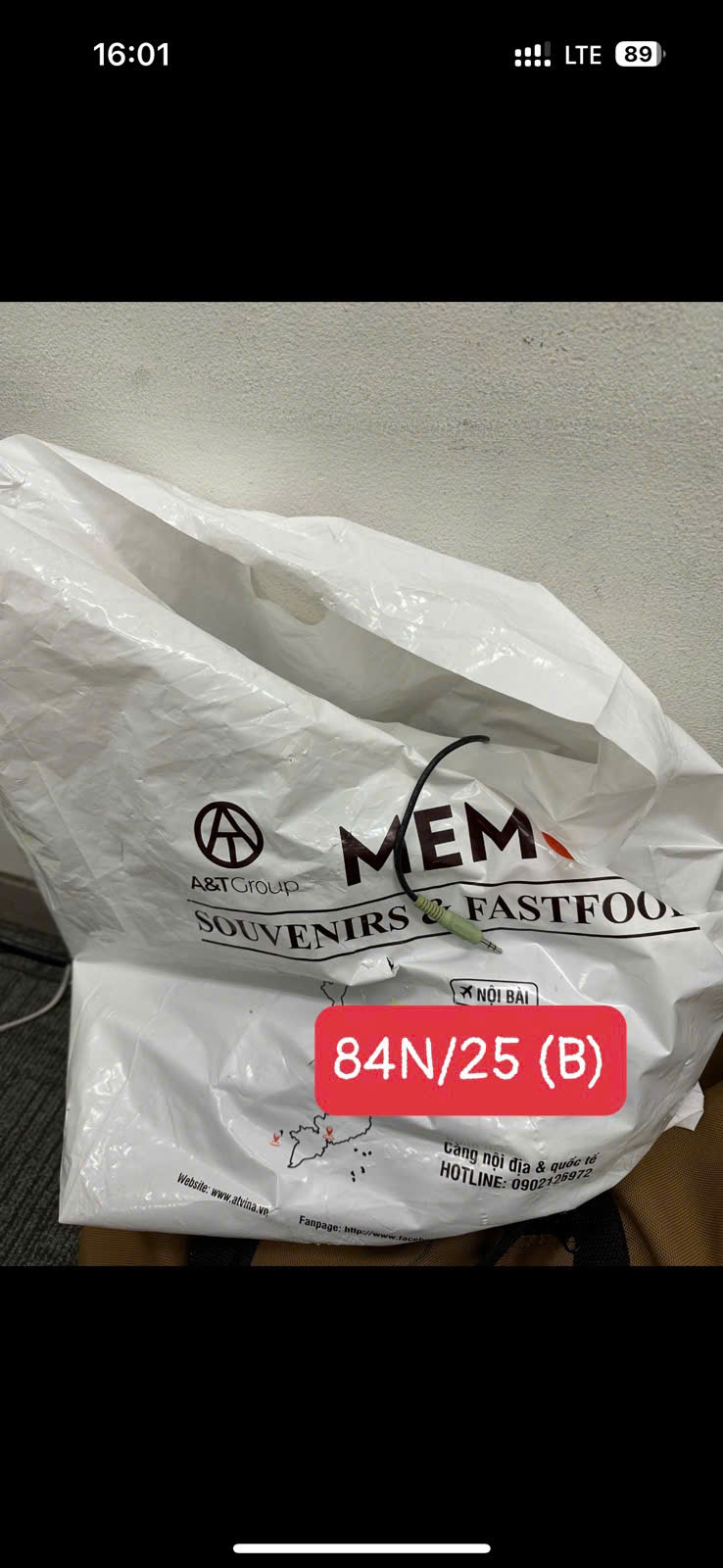 Ngày tiếp nhận: 11/01/2025 Mã hồ sơ: 74N2025 Mô tả: 01 túi giấy màu trắng, bên trong có chứa: 03 nón lá, 01 bình nước màu trăng, thực phẩm, vật dụng cá nhân (đã qua sử dụng). |
