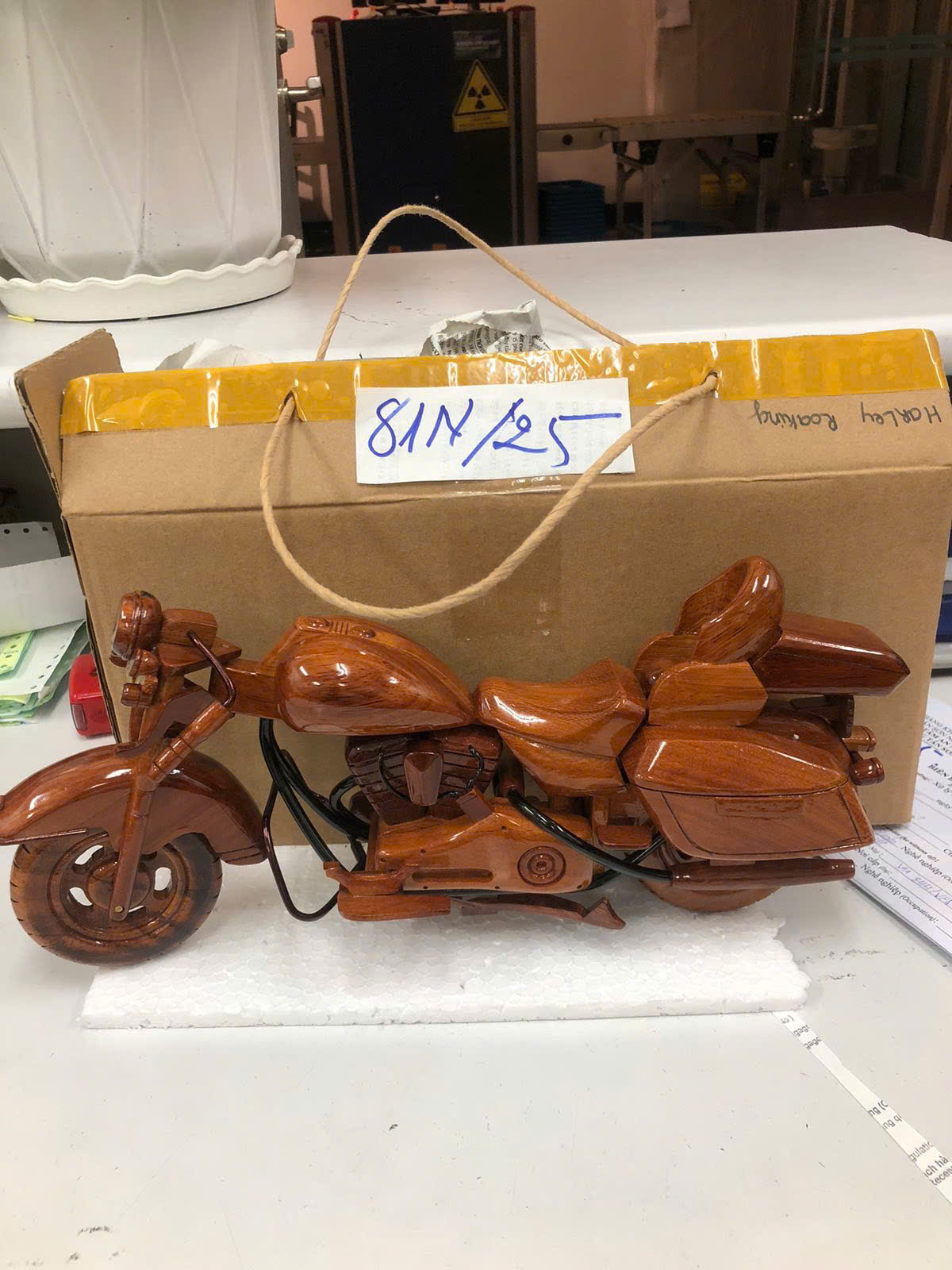 Ngày tiếp nhận: 12/01/2025 Mã hồ sơ: 81N2025 Mô tả: 01 mô hình xe máy bằng gỗ. |