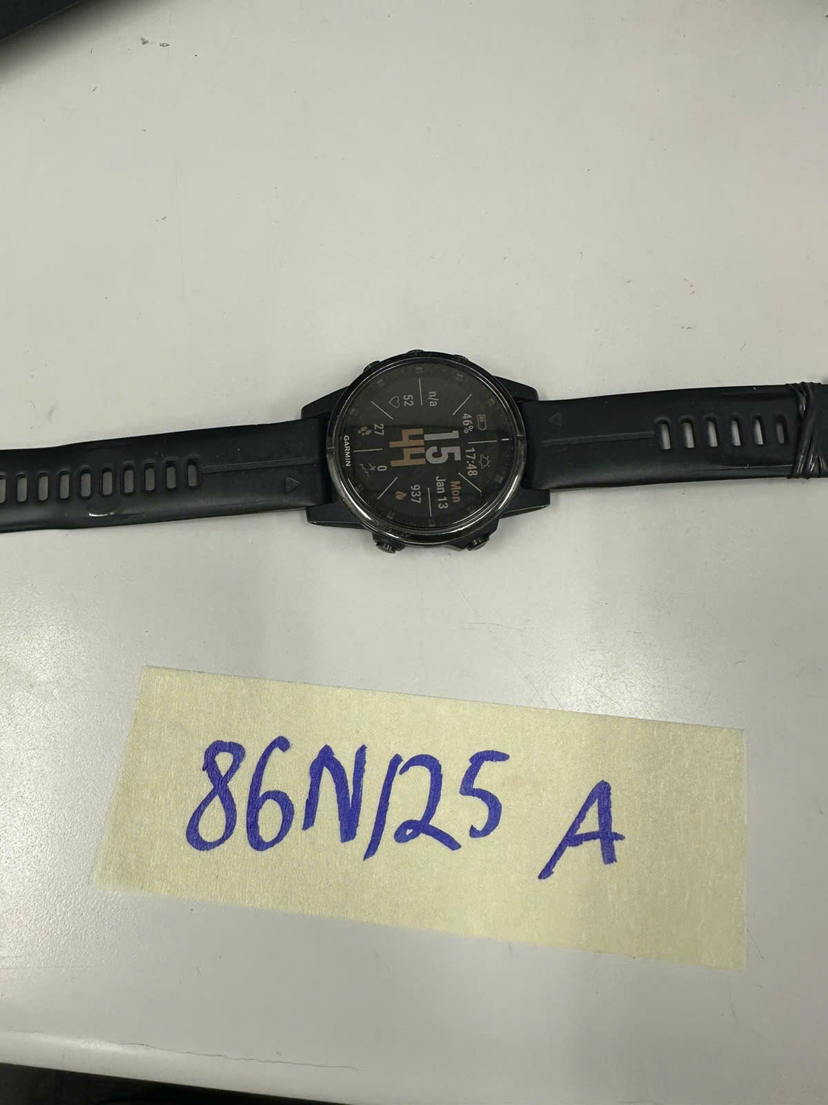 Ngày tiếp nhận: 13/01/2025 Mã hồ sơ: 86N2025A Mô tả: 01 đồng hồ điện từ mặt tròn, đây da màu đen, có chữ "GARMIN". |