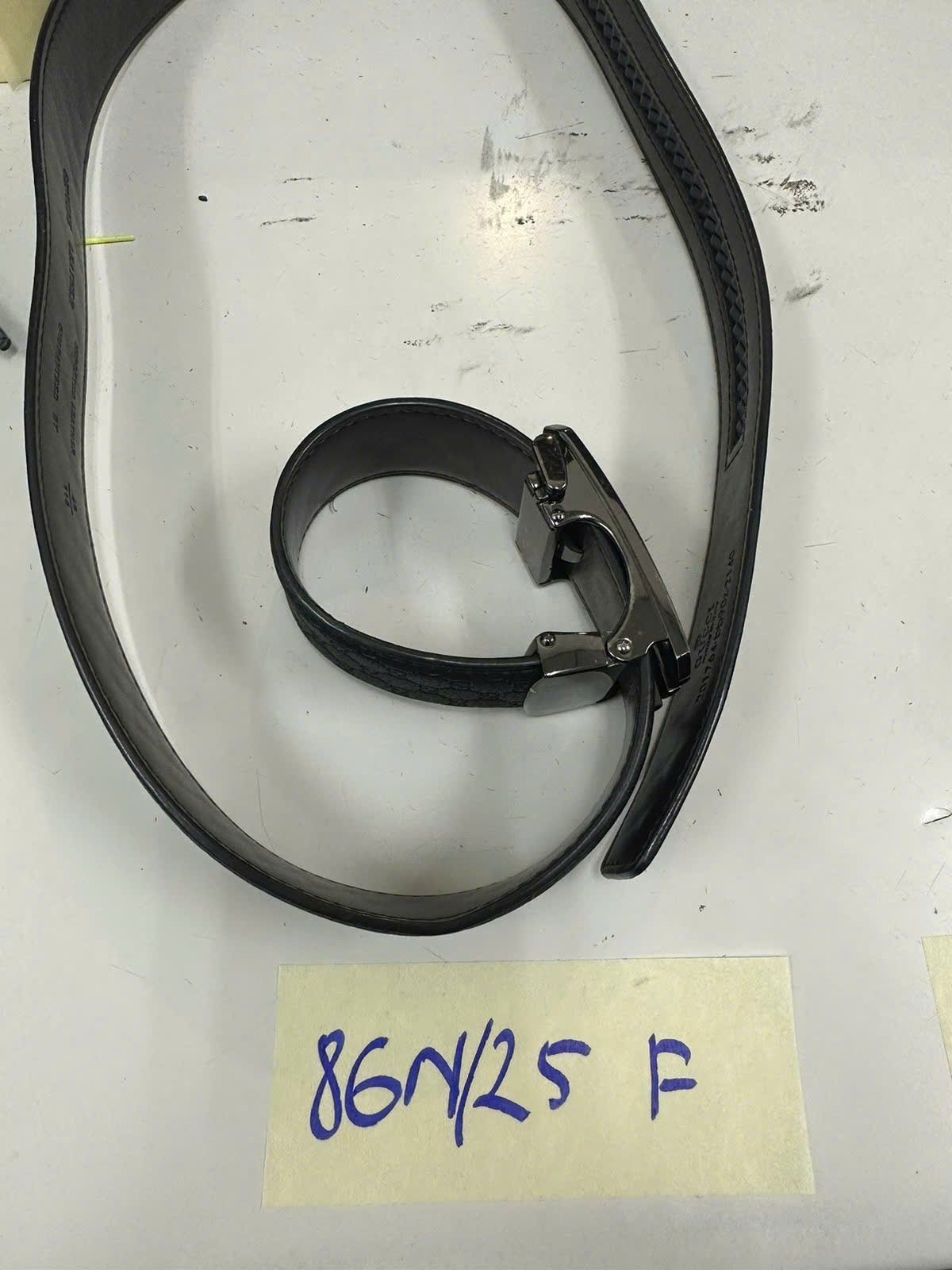 Ngày tiếp nhận: 13/01/2025 Mã hồ sơ: 86N2025F Mô tả: 01 thắt lưng đa màu đen, có chứ "GUCCI" trên khóa thắt lưng. |