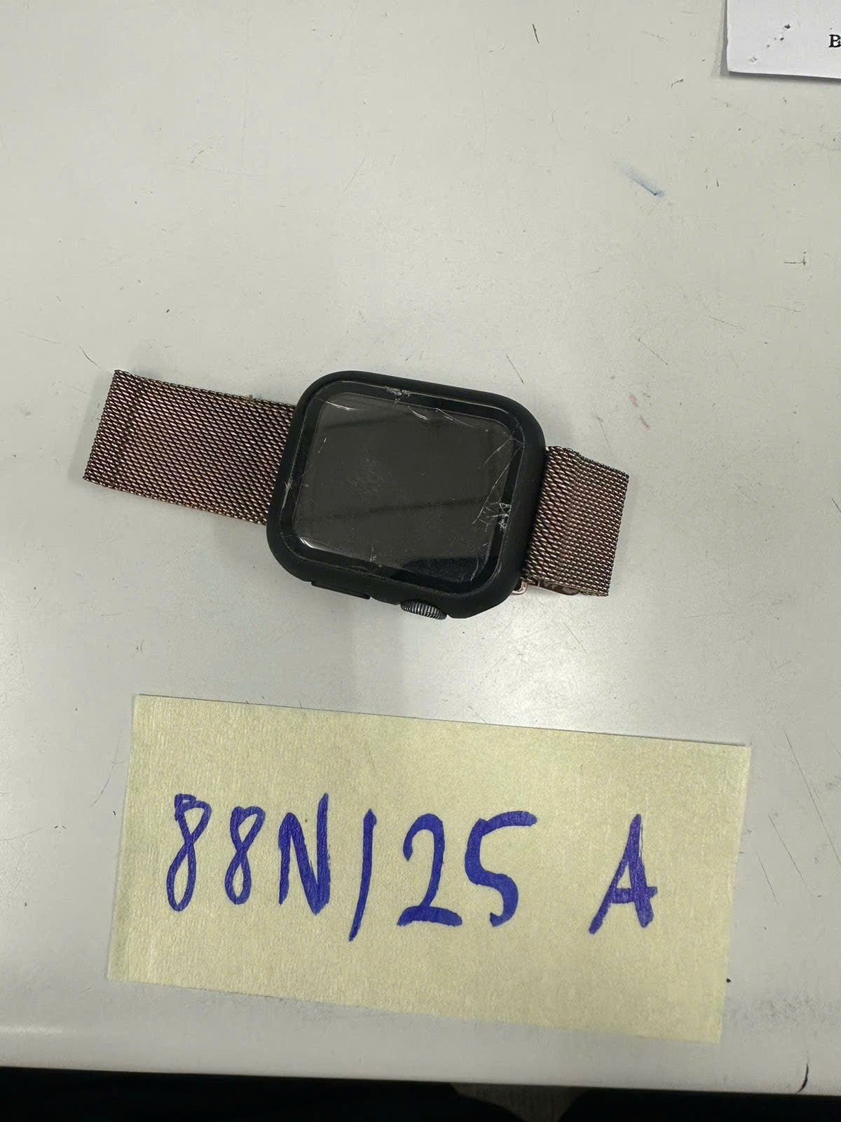 Ngày tiếp nhận: 13/01/2025 Mã hồ sơ: 88N2025A Mô tả: 01 đồng hồ Apple Watch SE 40mm màu xám, vỏ bảo vệ bằng nhựa màu đen, mặt màn hình bị vỡ, dây đeo bằng kim loại màu vàng hồng. |