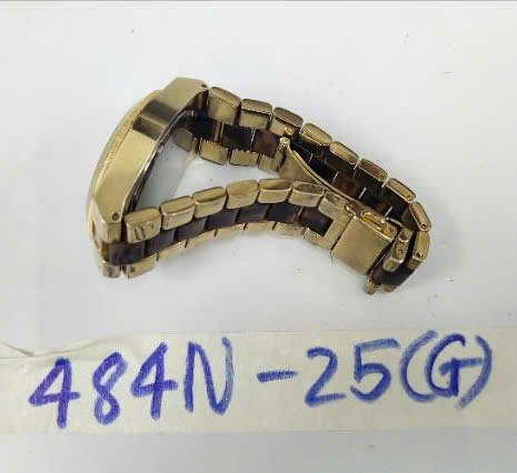 Ngày tiếp nhận: 12/03/2025 Mã hồ sơ: 484N2025G Mô tả: 01 đồng hồ kim loại màu vàng có chữ "MICHAEL KORS". |