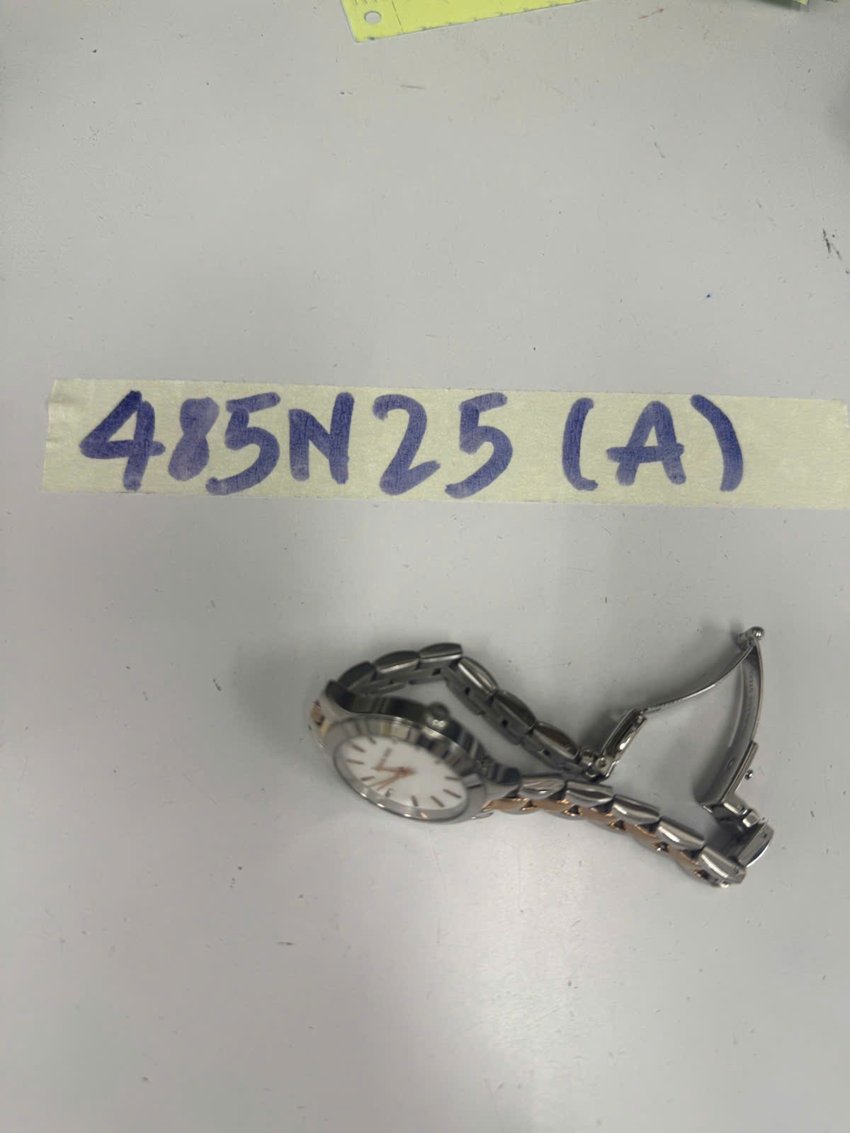 Ngày tiếp nhận: 13/03/2025 Mã hồ sơ: 485N2025A Mô tả: 01 đồng hồ kim loại mặt tròn màu bạc, dây kim loại màu bạc, trên mặt có chữ "MICHAEL KORS". |