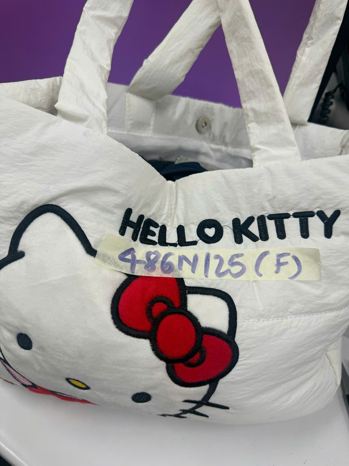 Ngày tiếp nhận: 13/03/2025 Mã hồ sơ: 486N2025F Mô tả: 01 túi xách màu trắng có chữ HELLO KITTY màu đen bên trong gồm một số vật dụng cá nhân. |