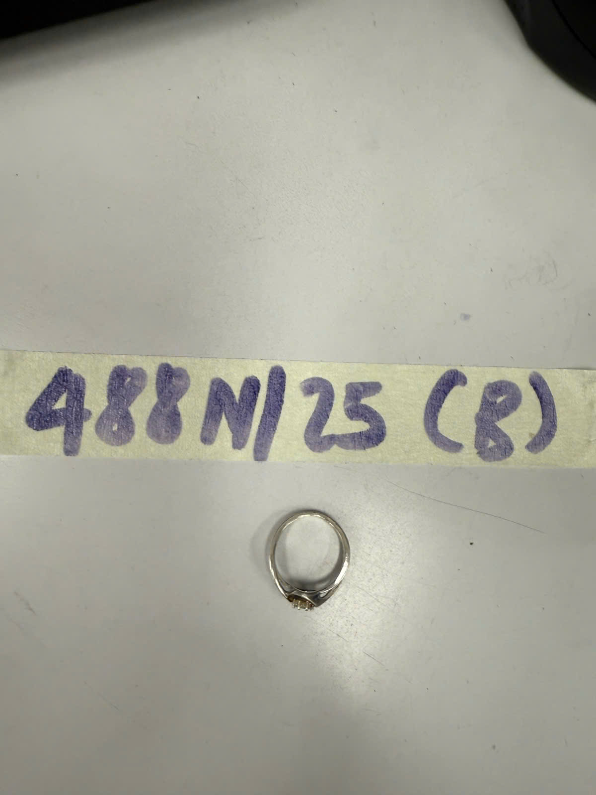 Ngày tiếp nhận: 13/03/2025 Mã hồ sơ: 488N2025B Mô tả: 01 nhẫn kim loại màu bạc có đính đá ở trên mặt nhẫn, trong nhẫn có số 925. |