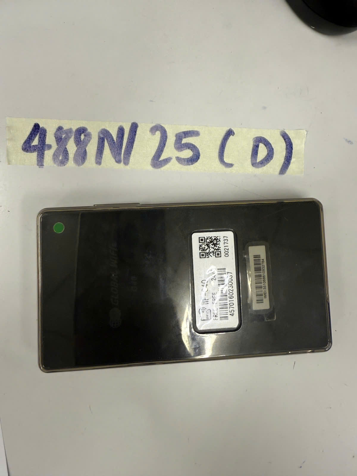 Ngày tiếp nhận: 13/03/2025 Mã hồ sơ: 488N2025D Mô tả: 01 cục phát wifi màu đen có logo chữ "GLOBAL WIFI G40 cùng ốp nhựa trong. |
