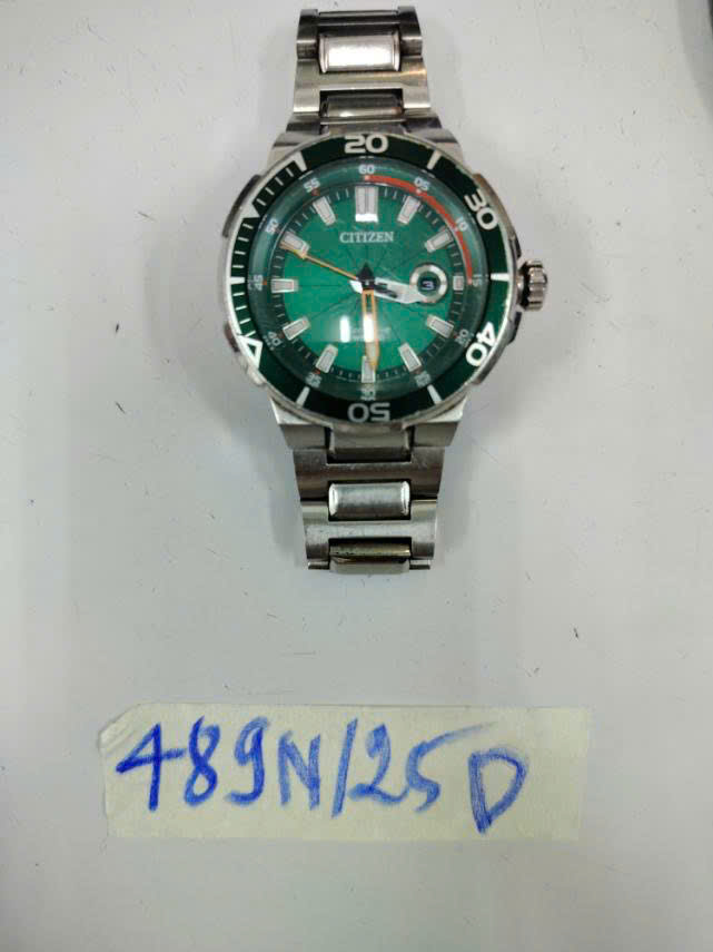 Ngày tiếp nhận: 13/03/2025 Mã hồ sơ: 489N2025D Mô tả: 01 đồng hồ mặt kim loại hình tròn có chỗ "CITIZEN", dây kim loại. |