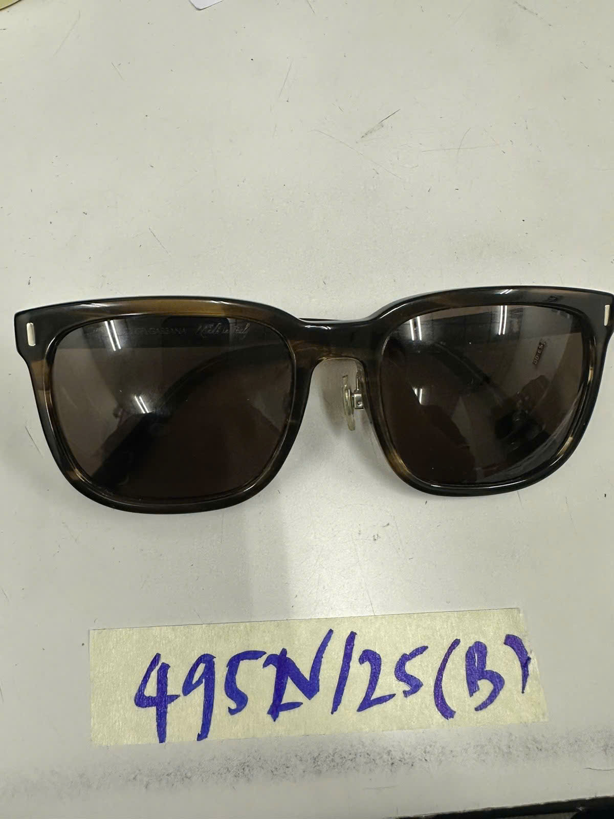 Ngày tiếp nhận: 13/03/2025 Mã hồ sơ: 495N2025B Mô tả: 01 kính mắt màu nâu có ghi chữ "DOCLE GABBANA". |
