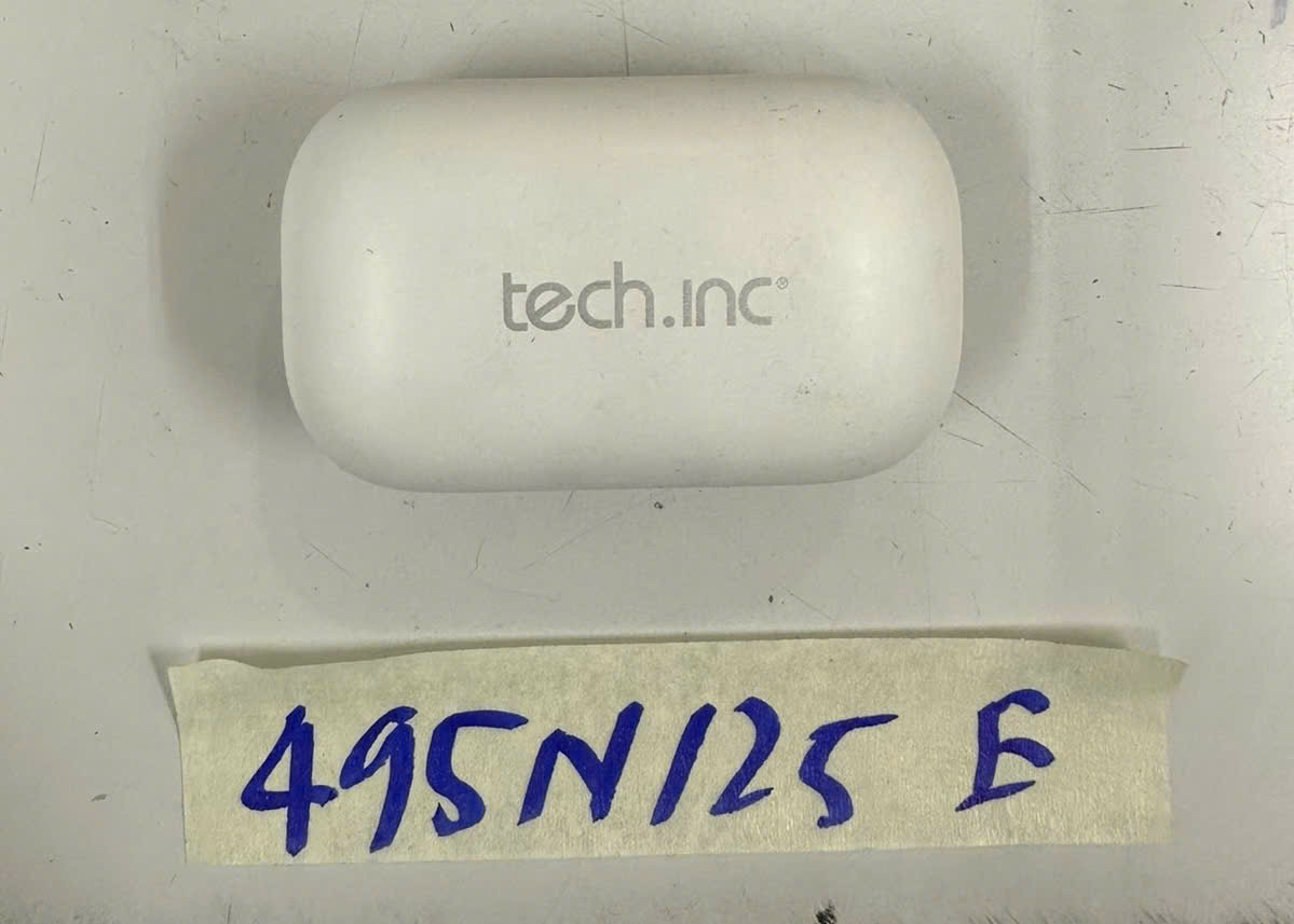 Ngày tiếp nhận: 13/03/2025 Mã hồ sơ: 495N2025E Mô tả: 01 hộp tai nghe không dây màu trắng có ghi chữ "TECH.INC" ( 02 tai). |