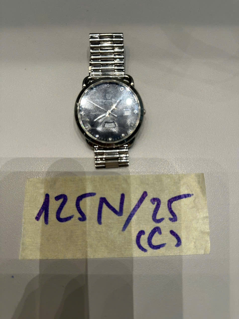 Ngày tiếp nhận: 11/12/2025 Mã hồ sơ: 125N2025C Mô tả: 01 đồng hồ dây kim loại màu bạc có chữ OLYMPA STAR. |