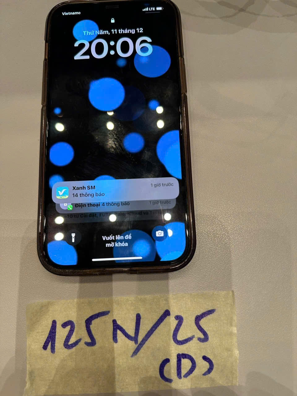 Ngày tiếp nhận: 11/12/2025 Mã hồ sơ: 125N2025D Mô tả: 01 điện thoại iPhone màu xanh. |