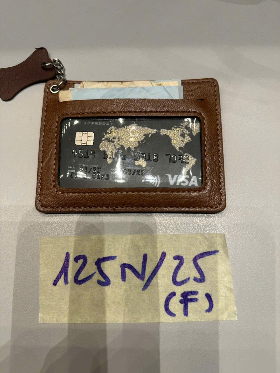 Ngày tiếp nhận: 11/12/2025 Mã hồ sơ: 125N2025F Mô tả: 01 ví màu nâu/ kẹp đựng card bên trong có thẻ visa màu đen của Trung Quốc và 72.000đ. |