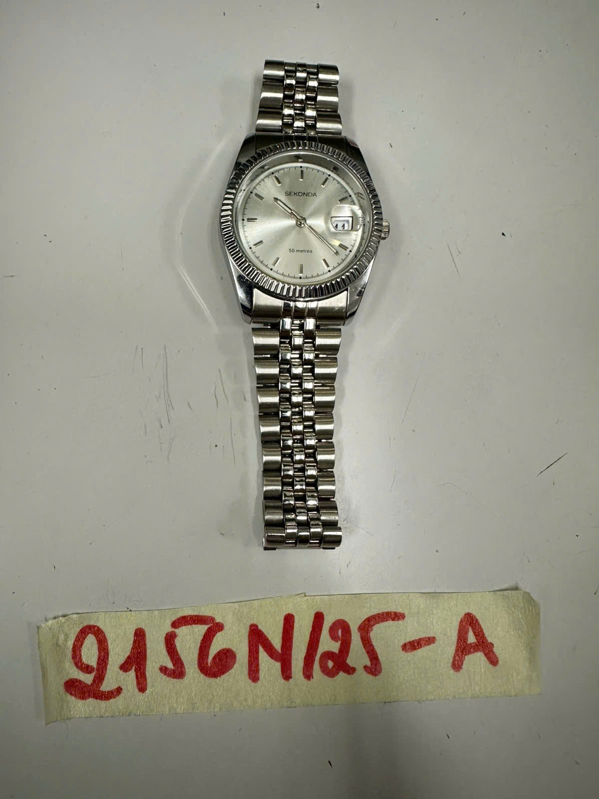 Ngày tiếp nhận: 12/12/2025 Mã hồ sơ: 2156N2025A Mô tả: 01 đồng hồ kim loại màu trắng "Sekonda". |