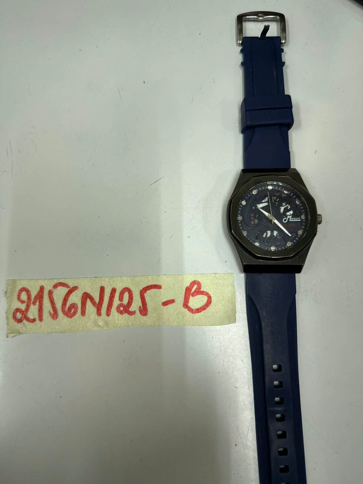 Ngày tiếp nhận: 12/12/2025 Mã hồ sơ: 2156N2025B Mô tả: 01 đông hồ kim loại màu đen "Mwatch" dây cao su. |