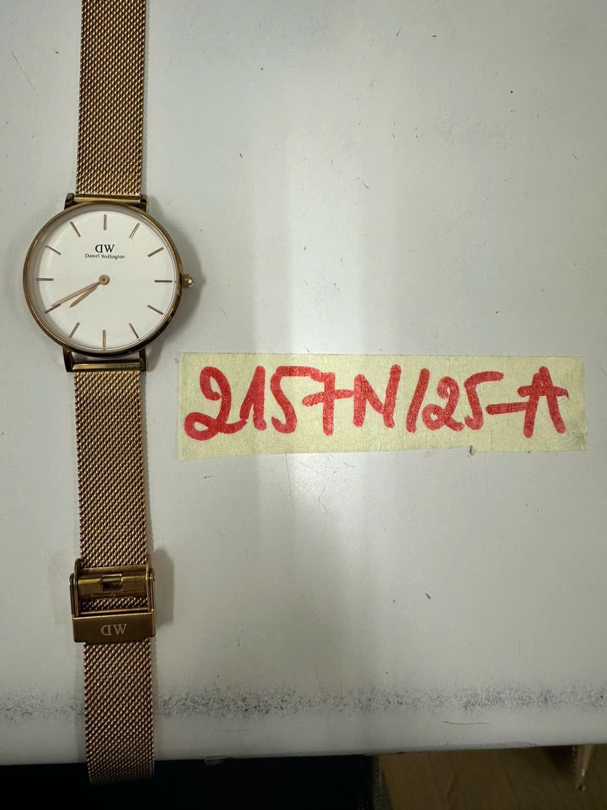 Ngày tiếp nhận: 12/12/2025 Mã hồ sơ: 2157N2025A Mô tả: 01 đồng hồ kim loại màu vàng "Daniel Wellington". |
