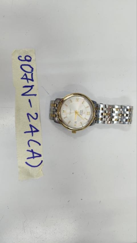 Ngày tiếp nhận: 11/6/2024 Mã hồ sơ: 907N2024A Mô tả: 01 đồng hồ dây kim loại mặt tròn có chữ OMEGA. |