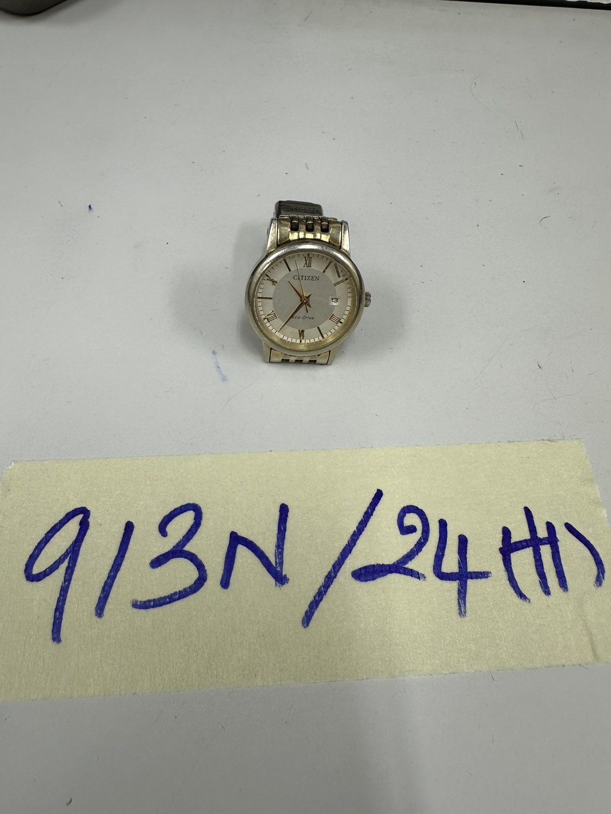 Ngày tiếp nhận: 11/6/2024 Mã hồ sơ: 913N2024H Mô tả: 01 đồng hồ kim loại màu vàng mặt tròn có chữ "Citizen" đã qua sử dụng. |