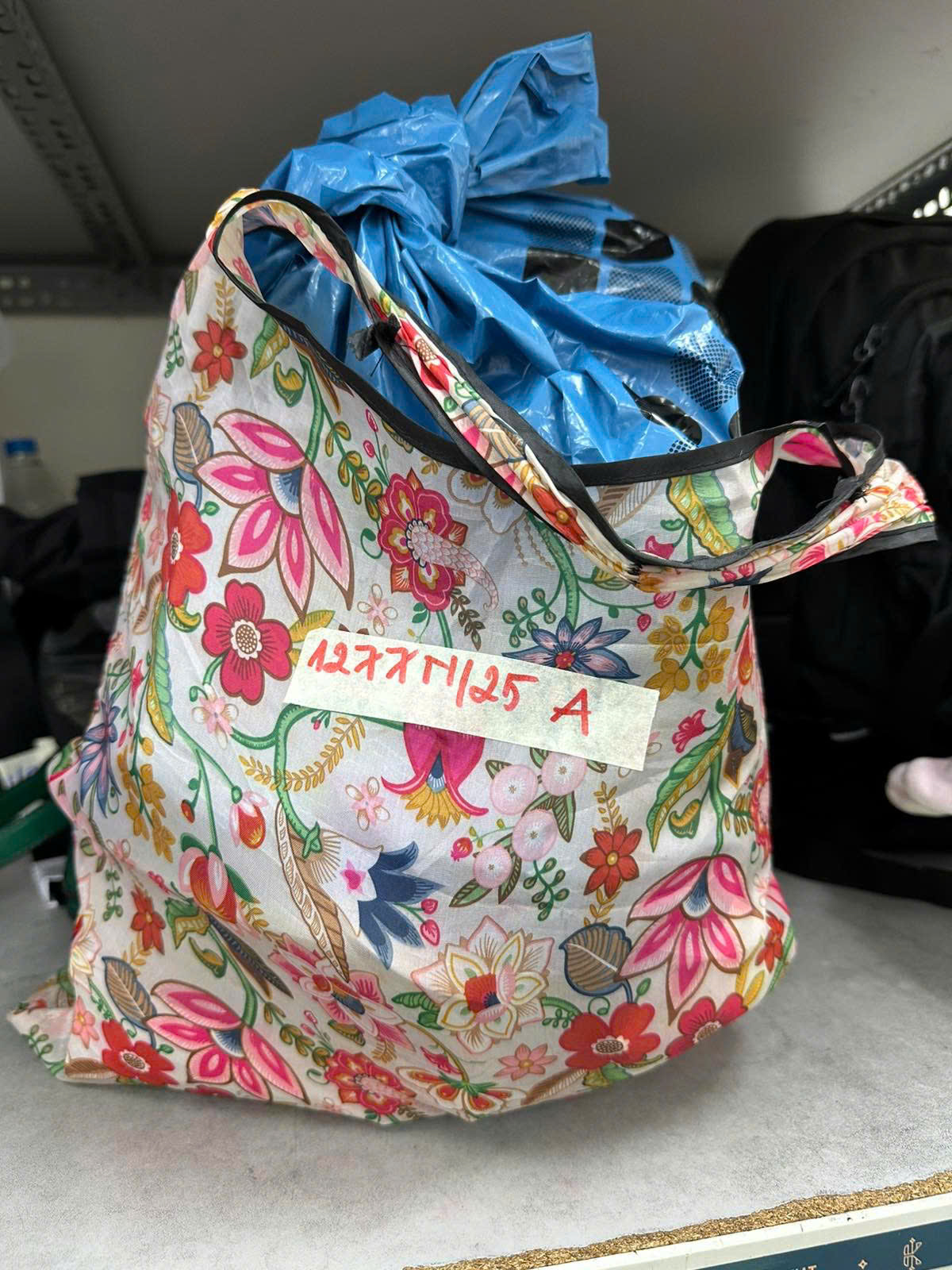 Ngày tiếp nhận: 12/7/2025 Mã hồ sơ: 1277N2025A Mô tả: 01 túi vải màu trắng hình hoa không có hiệu, có vật dụng cá nhân. |