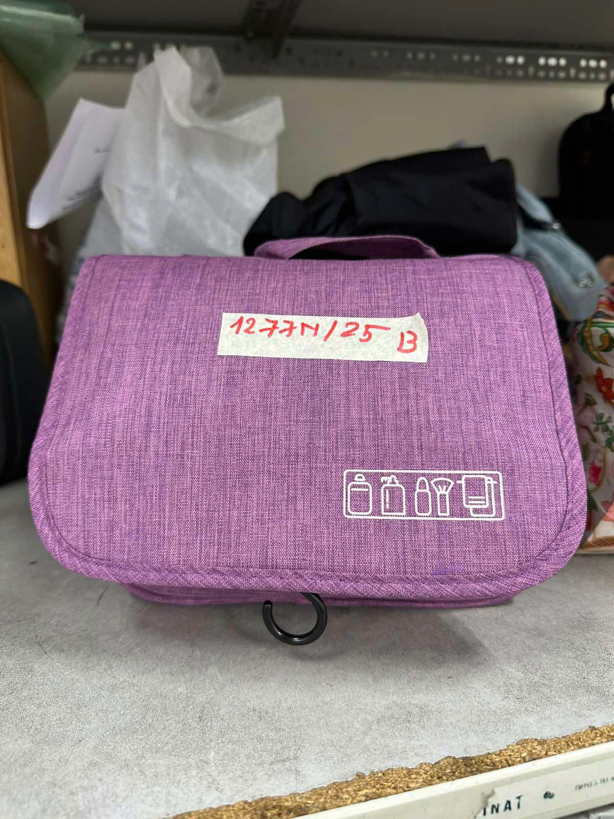 Ngày tiếp nhận: 12/7/2025 Mã hồ sơ: 1277N2025B Mô tả: 01 túi trang điểm màu tím không rõ hiệu bên trong có dụng cụ trang điểm. |