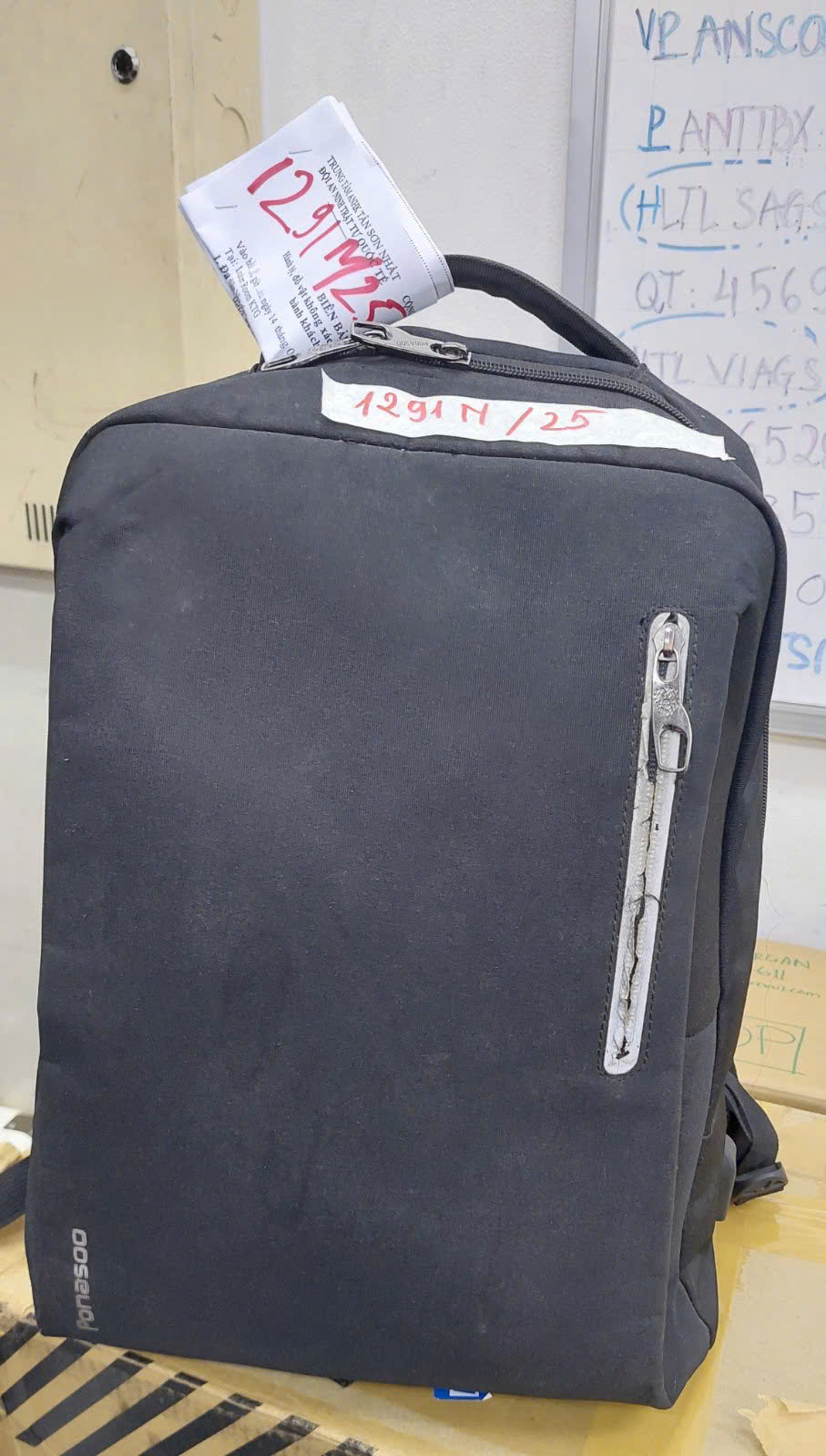 Ngày tiếp nhận: 14/7/2025 Mã hồ sơ: 1291N2025 Mô tả: 01 balo vải màu đen, một bộ chuyển đổi màu đen có chữ "HP", quần áo cũ bốc mùi và đồ dùng cá nhân đã qua sử dụng. |