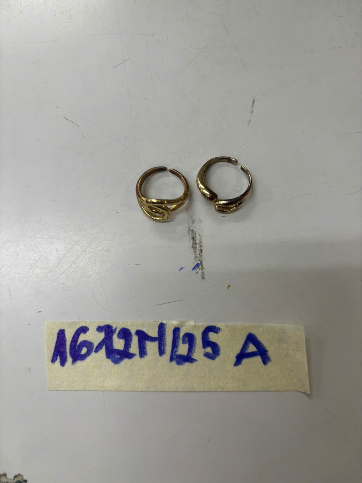 Ngày tiếp nhận: 11/9/2025 Mã hồ sơ: 1672N2025A Mô tả: 02 nhẫn kim loại màu vàng. |
