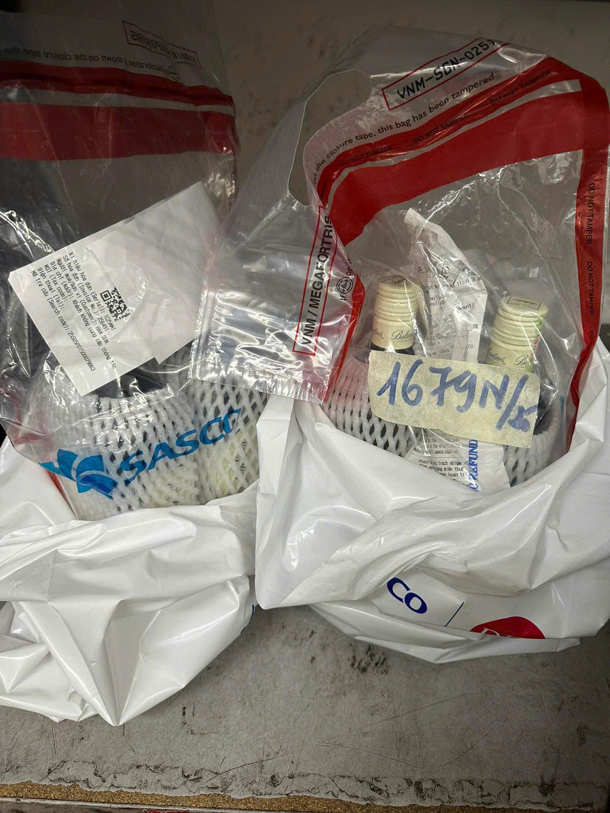Ngày tiếp nhận: 11/9/2025 Mã hồ sơ: 1671N2025A Mô tả: 01 valy nhựa màu xám SAMSONITE có 05 hộp giấy màu trắng có tượng trang trí, 01 hộp giấy đỏ có hóa đơn, 01 hộp giấy màu trắng đựng bóp da nâu LEMINO, 01 bóp da đen "M" có cọ trang điểm. |