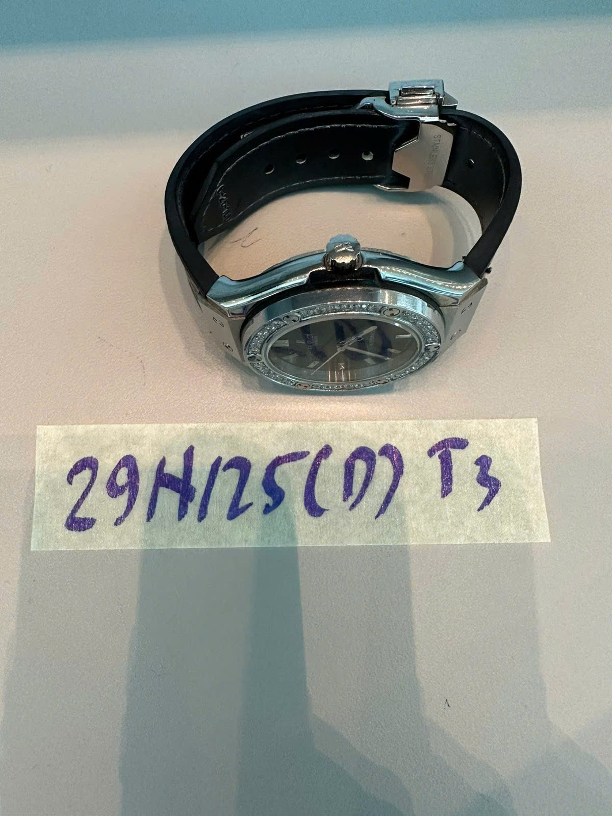 Ngày tiếp nhận: 12/9/2025 Mã hồ sơ: 29N2025D Mô tả: 01 đồng hồ kim loại "HUBLOT" dây đen. |