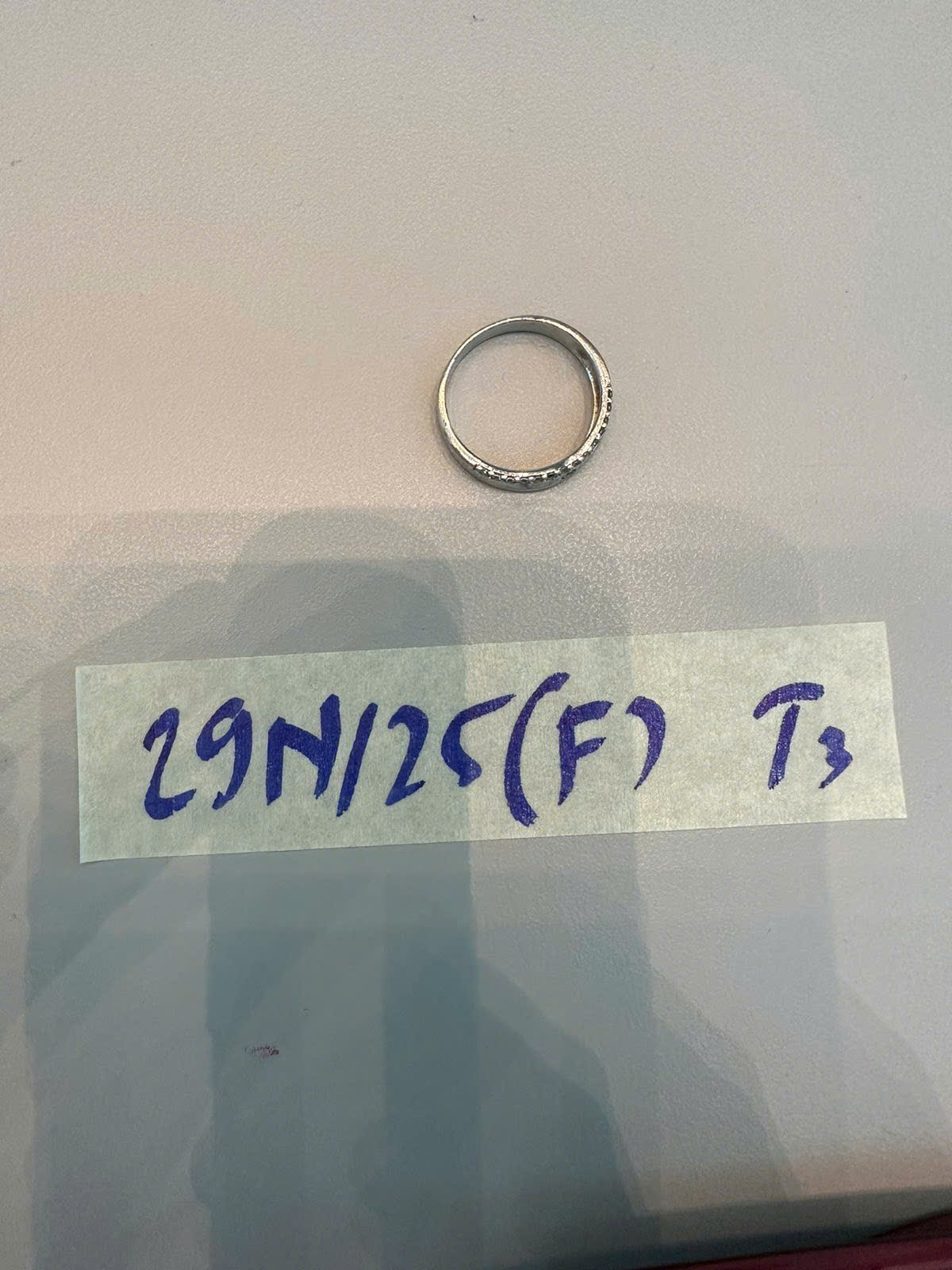 Ngày tiếp nhận: 12/9/2025 Mã hồ sơ: 29N2025F Mô tả: 01 nhẫn kim loại màu trắng "925 PNJ". |