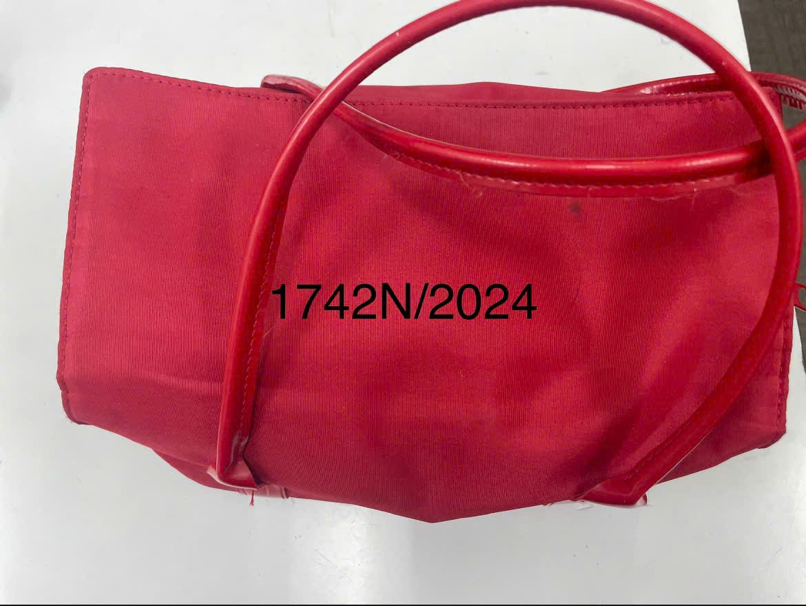Ngày tiếp nhận: 14/10/2024 Mã hồ sơ: 17612024 Mô tả: 01 túi xách tay màu đỏ không khóa bên trong có quần áo và đồ cá nhân đã qua sử dụng. |