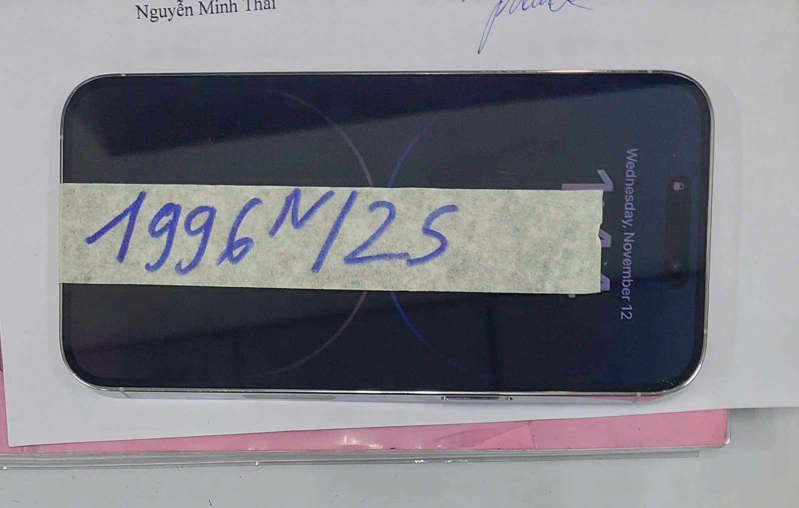 Ngày tiếp nhận: 12/11/2025 Mã hồ sơ: 1996N2025 Mô tả: 01 điện thoại di động màu trắng có nhãn hình trái táo (vỡ nát mặt lưng). |