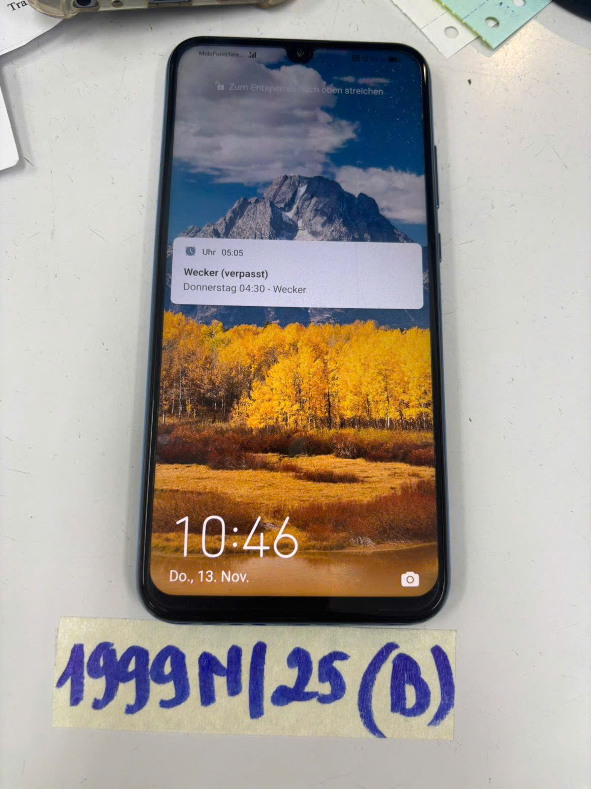 Ngày tiếp nhận: 13/11/2025 Mã hồ sơ: 1999N2025B Mô tả: 01 điện thoại màu xanh bạc mặt lưng có chữ "HONOR". |