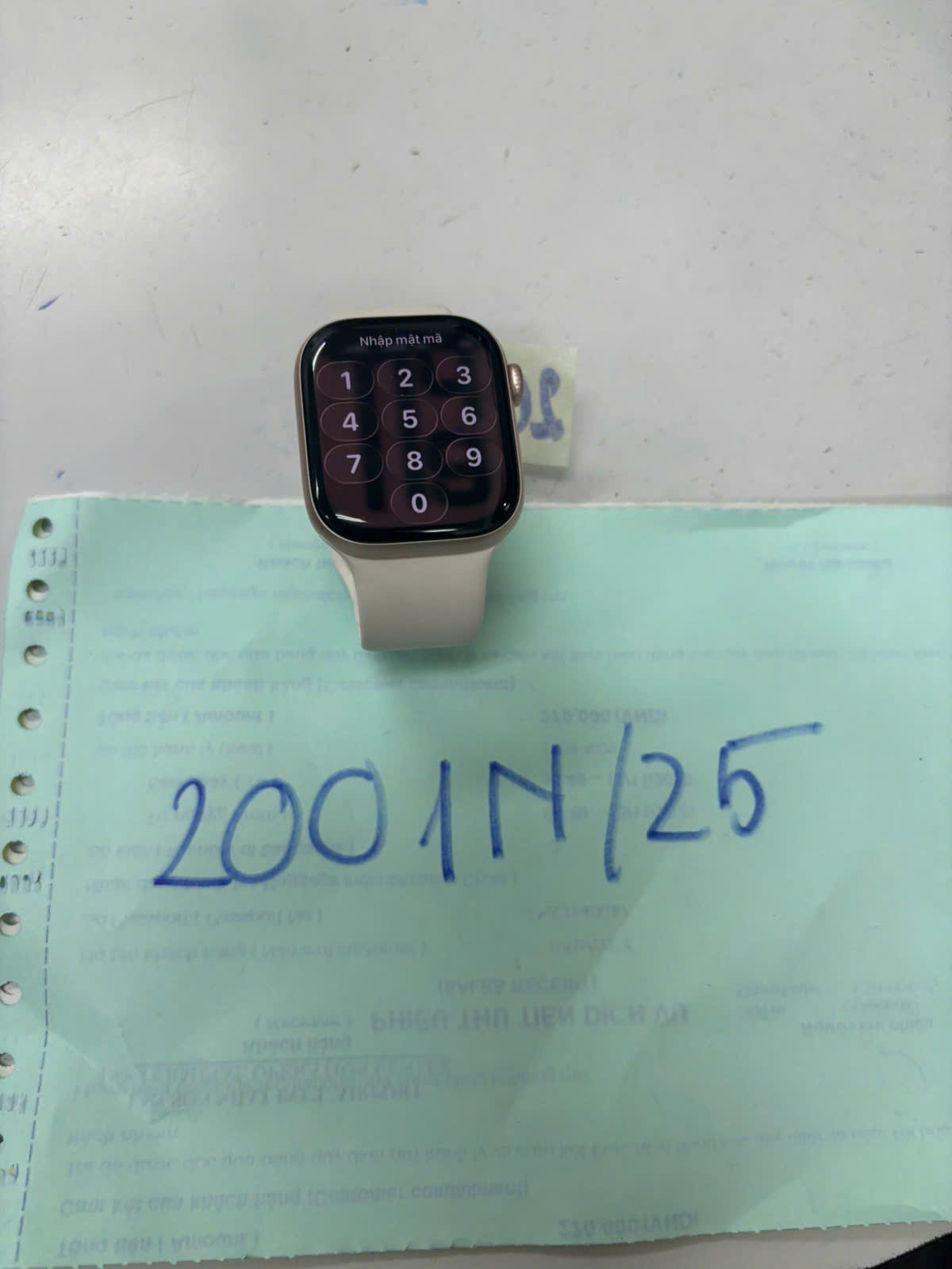 Ngày tiếp nhận: 13/11/2025 Mã hồ sơ: 2001N2025 Mô tả: 01 đồng hồ thông minh màu hồng có chữ "APPLE WATCH SERIES 10" dây nhựa màu trắng. |
