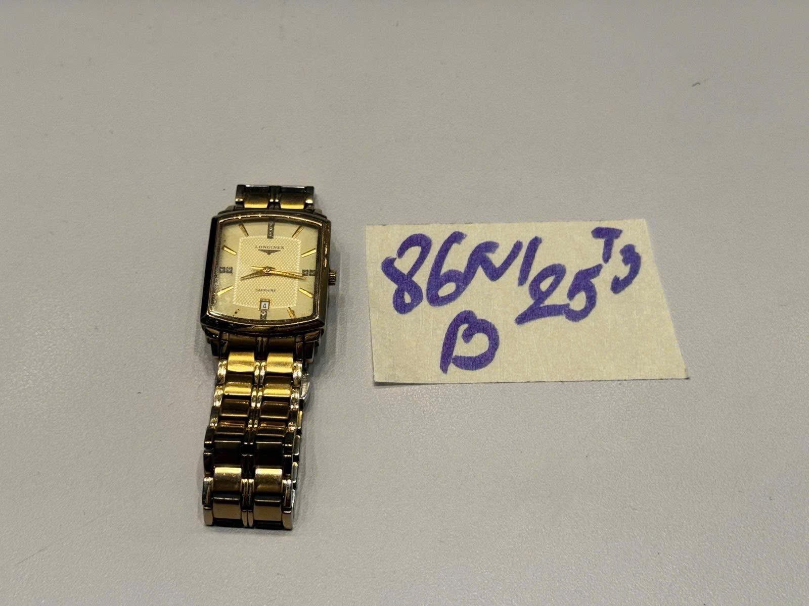 Ngày tiếp nhận: 12/11/2025 Mã hồ sơ: 86N2025B Mô tả: 01 đồng hồ mặt chữ nhật, dây kim loại màu vàng, trên mặt đồng hồ có chữ "Longines". |