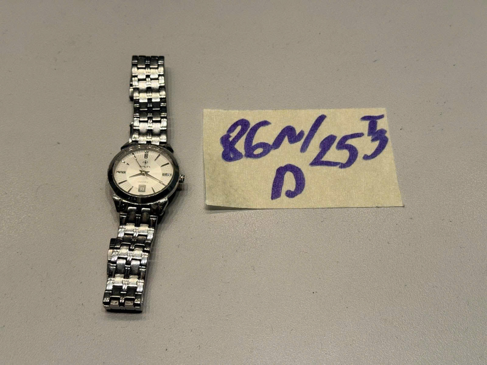 Ngày tiếp nhận: 13/11/2025 Mã hồ sơ: 2003N2025B Mô tả: 01 đồng hồ kim loại mặt trong màu bạc có chữ "CASIS PACIFIER" kèm dây kim loại màu bạc. |