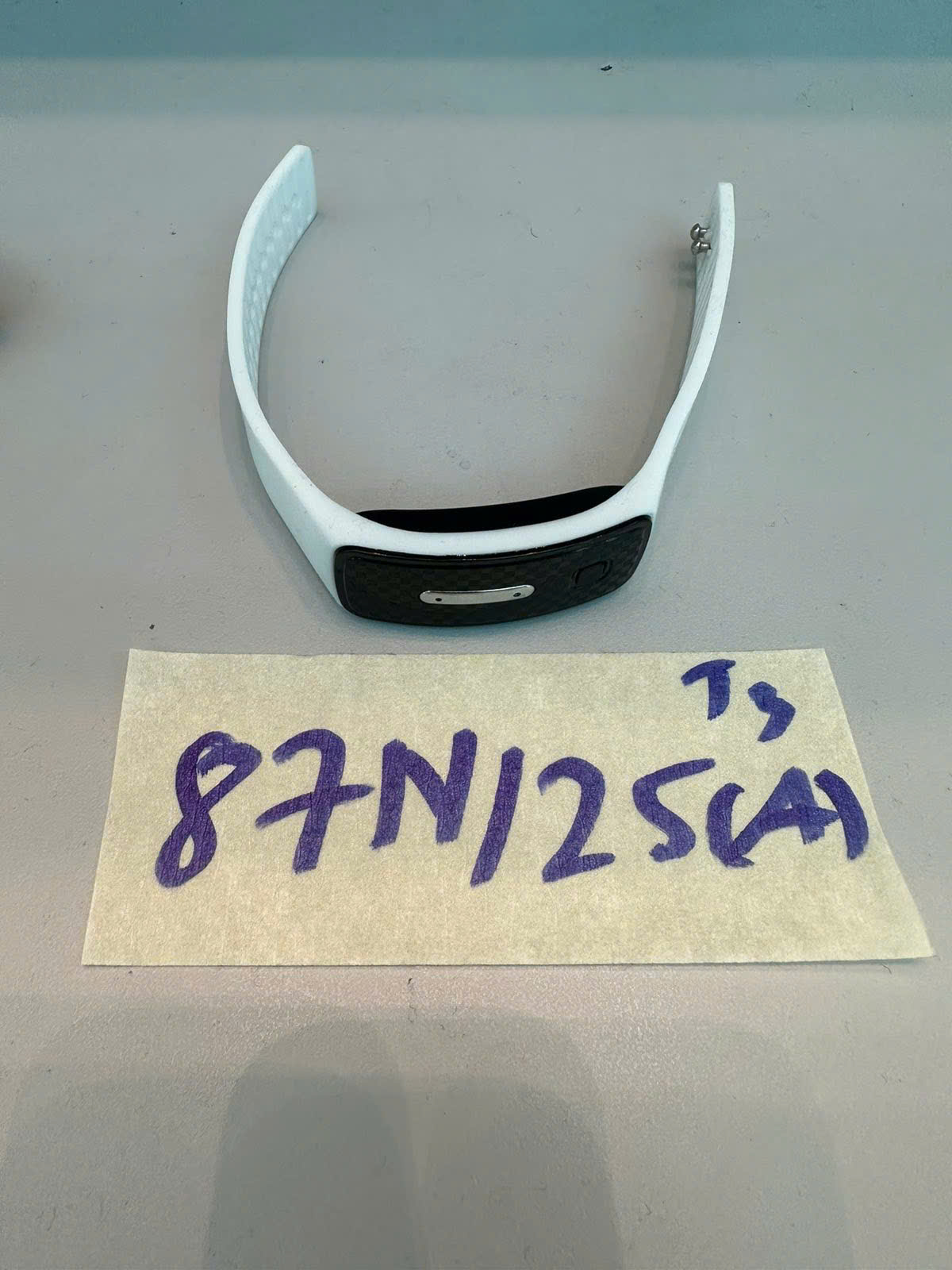 Ngày tiếp nhận: 13/11/2025 Mã hồ sơ: 87N2025A Mô tả: 01 vòng tay điện tử mặt chữ nhật màu đen, dây bằng nhựa màu trắng. |