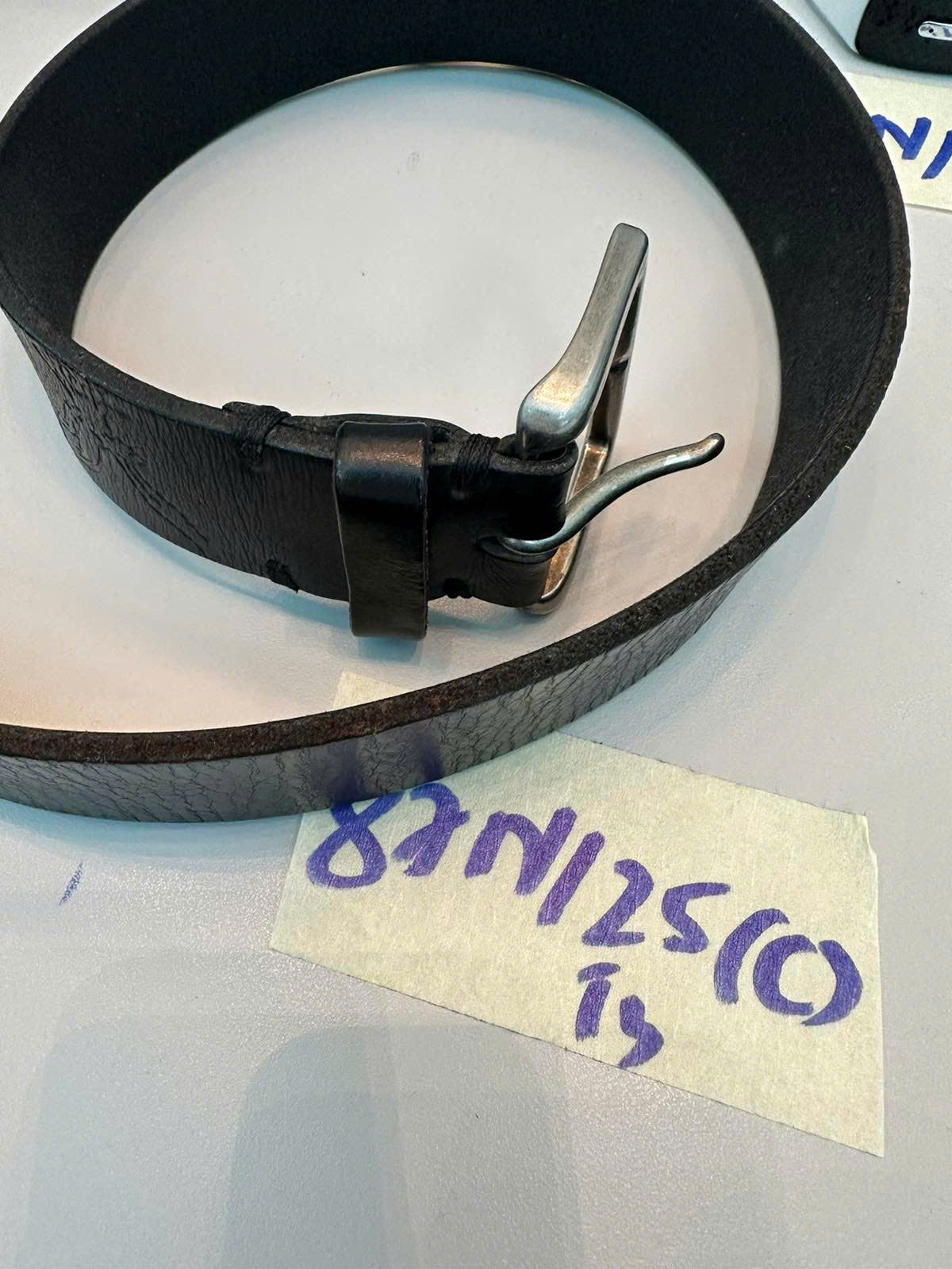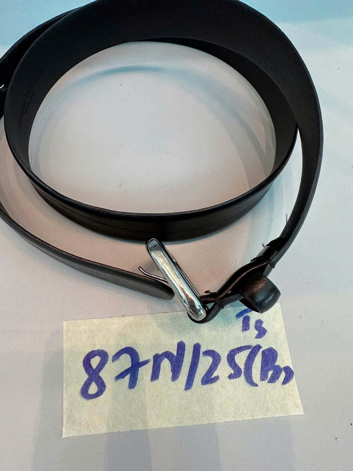Ngày tiếp nhận: 13/11/2025 Mã hồ sơ: 87N2025B Mô tả: 01 thắt lưng dây da màu nâu, mặt dây lưng kim loại màu trắng khung vuông, trên dây da thắt lưng có ghi chữ "Massin Dutti XS/7S". |