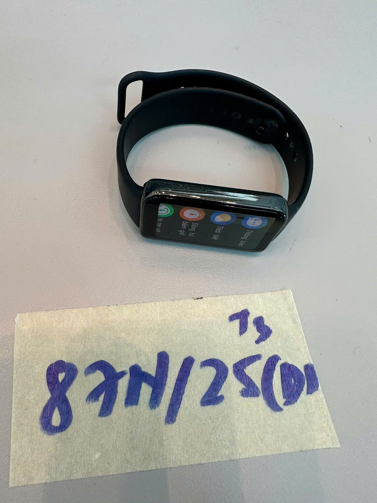 Ngày tiếp nhận: 13/11/2025 Mã hồ sơ: 2002N2025A Mô tả: 01 đồng hồ thông minh mặt màu đen, hình chữ nhật, có chữ "HUAWEI", dây đeo bằng vải màu xanh. |