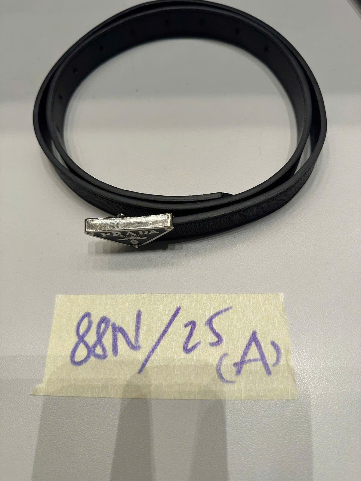 Ngày tiếp nhận: 13/11/2025 Mã hồ sơ: 88N2025A Mô tả: 01 dây lưng nữ màu đen có chữ (Prada). |