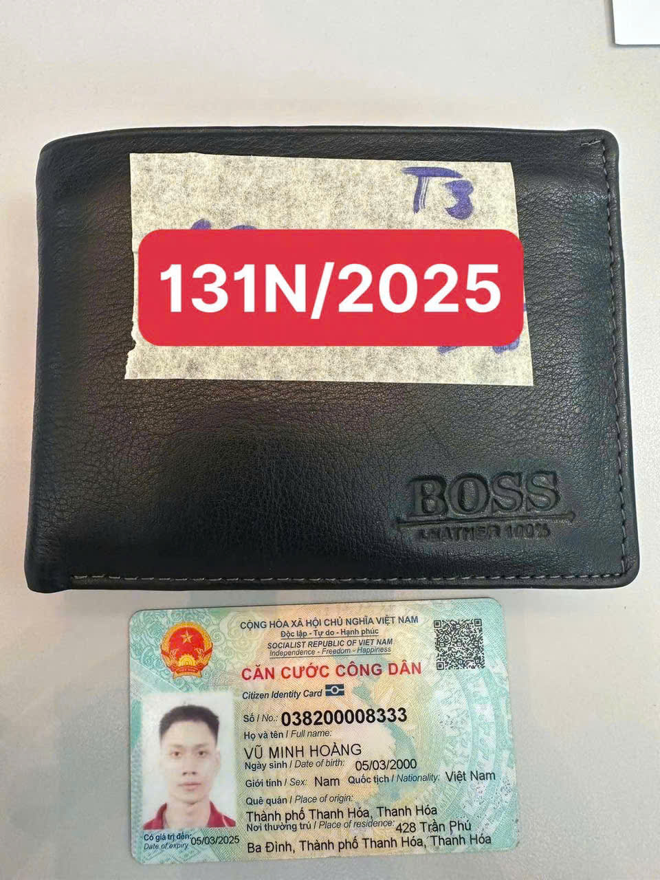 Ngày tiếp nhận: 14/12/2025 Mã hồ sơ: 131N2025 Mô tả: 01 ví nam màu đen có: giấy tờ tên Vũ Minh Hoàng và Lê Thị Nga, 21.000vnđ. |