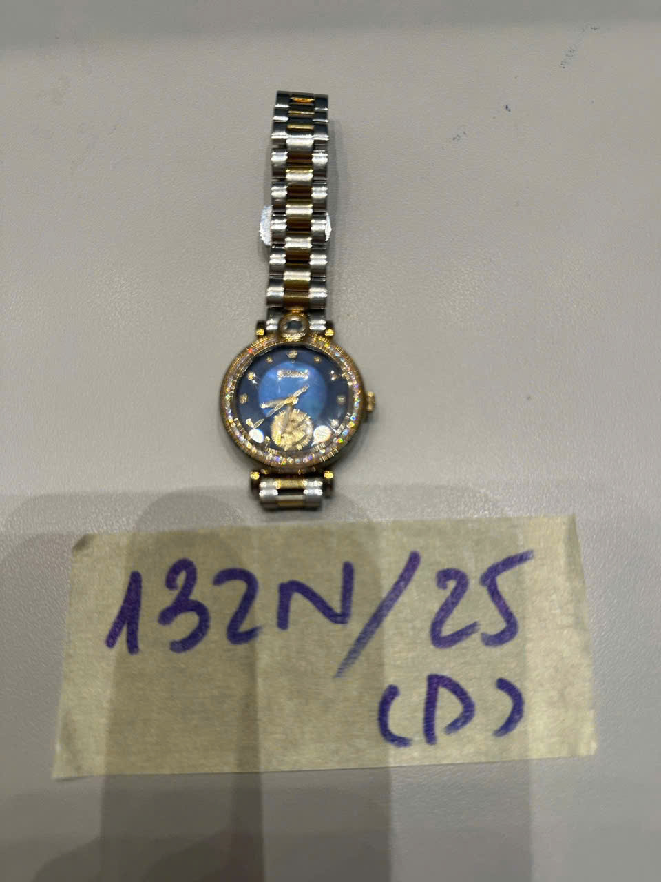 Ngày tiếp nhận: 14/12/2025 Mã hồ sơ: 132N2025D Mô tả: 01 đồng hồ màu kim loại bạc - vàng, mặt viền tròn có chữ STARKE, đã sử dụng. |
