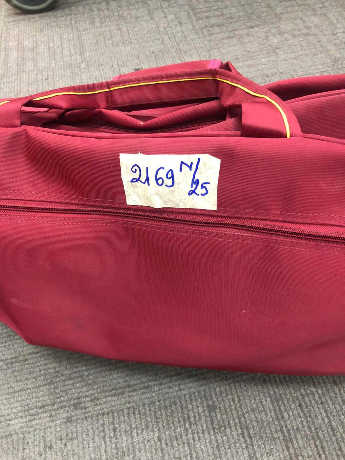 Ngày tiếp nhận: 14/12/2025 Mã hồ sơ: 2169N2025 Mô tả: 01 túi xách màu đỏ có quần áo. |