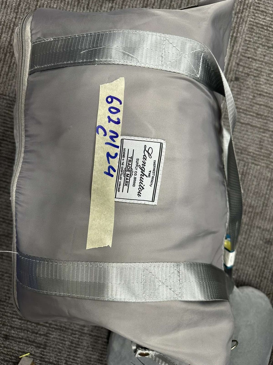 Ngày tiếp nhận: 14/4/2024 Mô tả: 01 túi xách bằng vải màu xám có chữ LANGHUTOU bên trong có một số bộ quần áo cũ. |