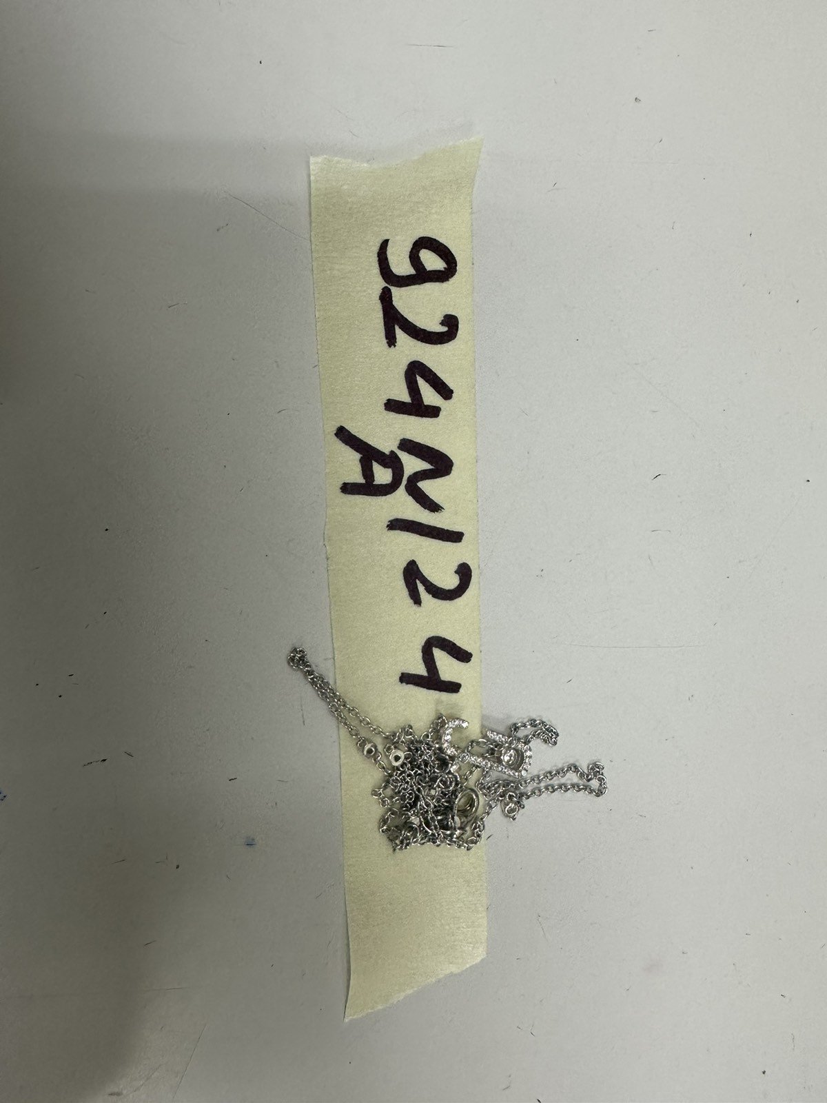 Ngày tiếp nhận: 14/6/2024 Mã hồ sơ: 924N2024A Mô tả: 01 Dây chuyền kim loại màu trắng. |