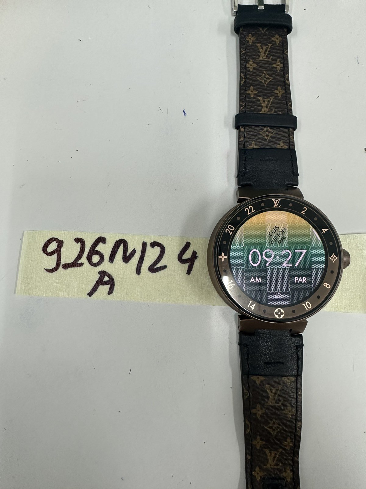Ngày tiếp nhận: 14/6/2024 Mã hồ sơ: 926N2024A Mô tả: 01 đồng hồ điện tử màu nâu mặt tròn có chữ LV trên viền, núm vặn có khắc kí hiệu LV, mặt sau có khắc chữ LV LOUOS VUITION cùng dãy số QA052 TX9398, dây đồng hồ bằng da màu nâu có họa tiết LV. |