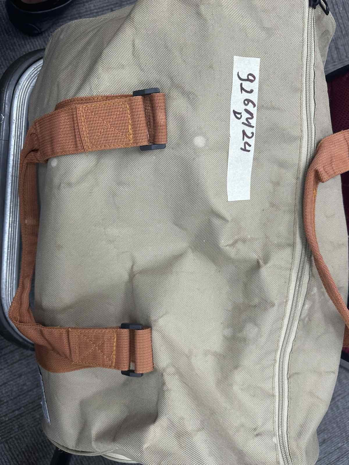 Ngày tiếp nhận: 14/6/2024 Mã hồ sơ: 926N2024D Mô tả: 01 túi vải đựng đồ quai nâu bên trong có một số quần áo cũ và 02 đôi giày. |